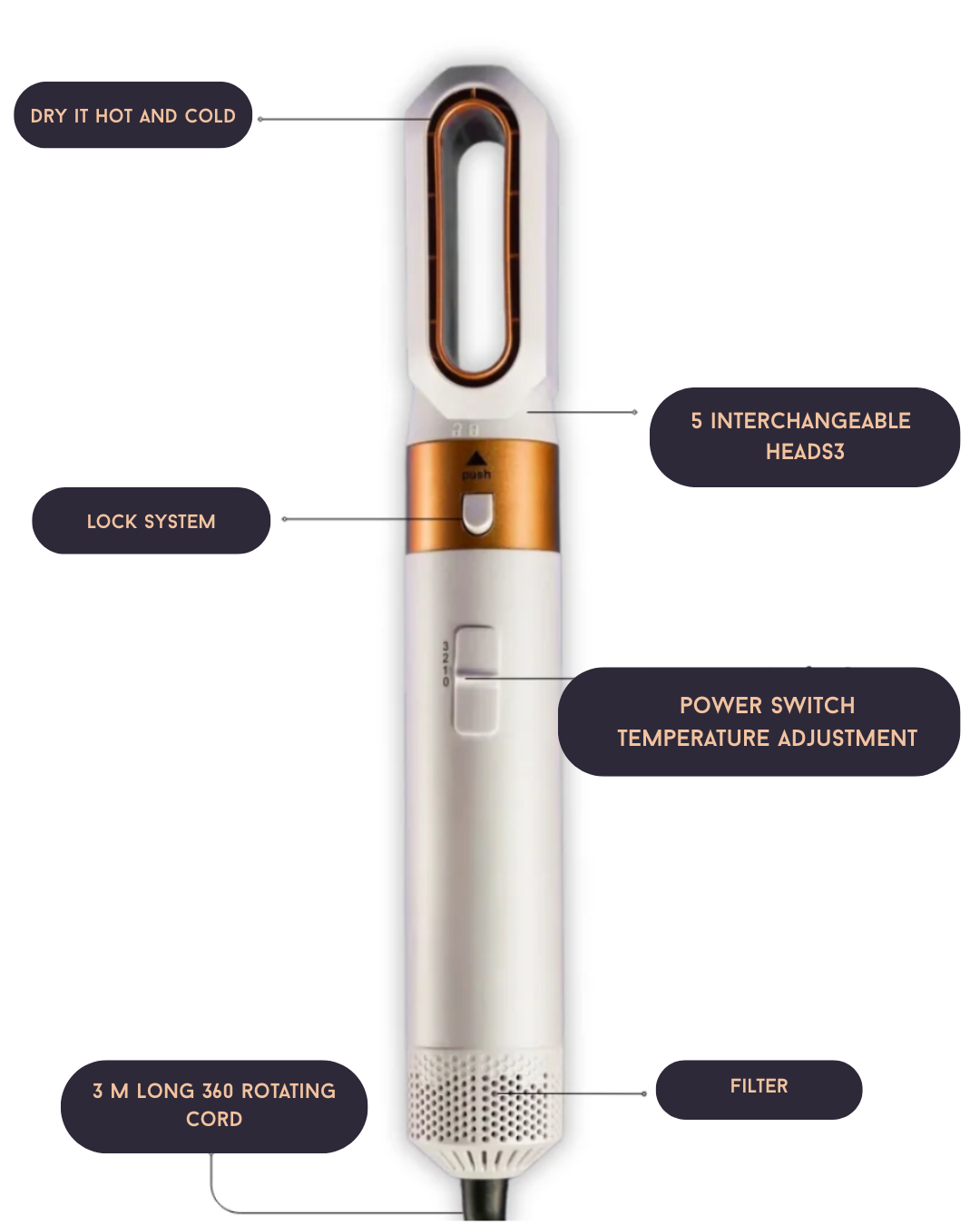 All-In-One.The styler swaps heads so you can dry, curl, straighten, wave, and volumize—no clutter, no hassle. Your go-to for every vibe.